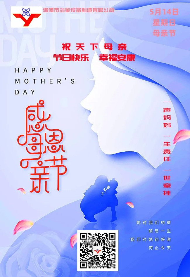 百善孝為先。孝心是對今天社會轉(zhuǎn)型期人際間情感疏離的感召,同時也是“湘冶”企業(yè)文化的重要內(nèi)容。值此母親節(jié)來臨之際,湘潭市冶金設(shè)備衷心祝愿天下母親節(jié)日快樂!幸福安康!