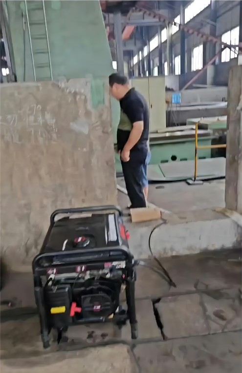 9點左右,車間突發(fā)停電,設(shè)備面臨被水浸的危險。劉美林總經(jīng)理果斷決策,采購發(fā)電機和配件,搶險團隊安裝調(diào)試后及時抽出立車地下水。因一臺不夠,喻斌也冒雨采購了一臺大功率發(fā)電機,為搶險工作提供了有力支持。